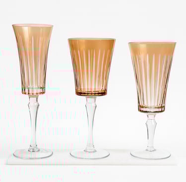 Crystal-clear glassware that elevates every toast. Choose from modern silhouettes, classic wine glasses, chic champagne flutes, or specialty drinkware to complement your unique style.
