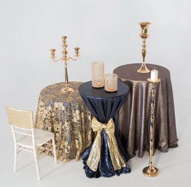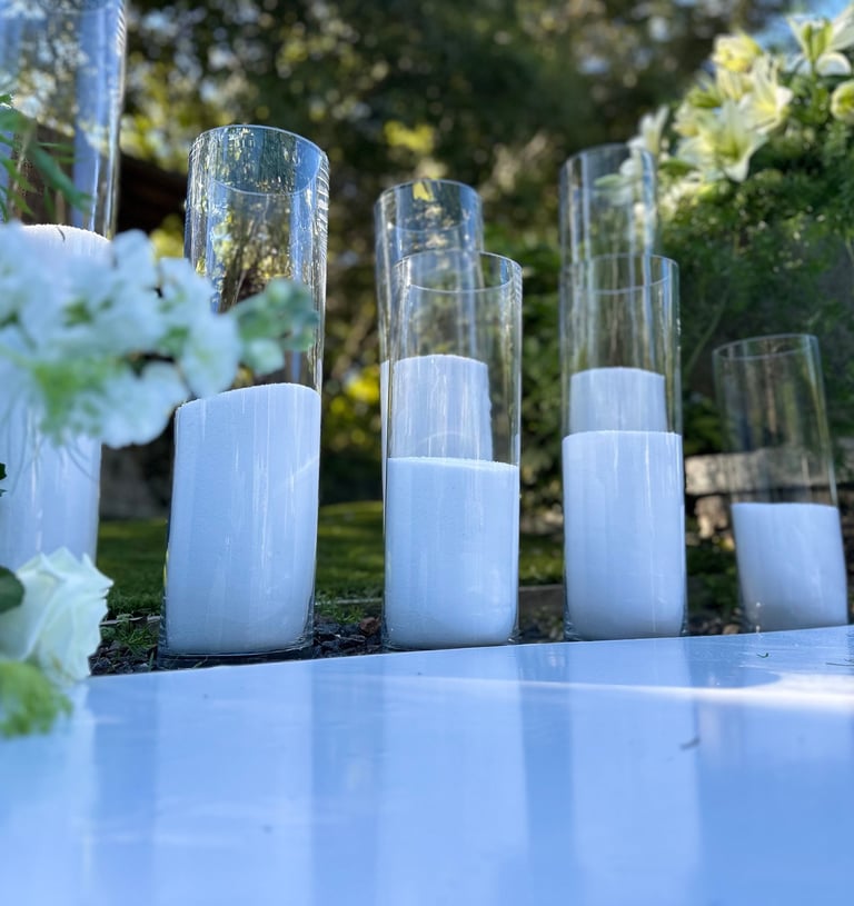 We specialize in elegant plates, sand candles, and table accessories to elevate your events.